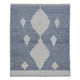This new Turkish handwoven rug has a beautiful blue background with neutral and multicolored accents. We call this design the "modern tulu" which describes the new take on the classic tulu rug with a thicker pile.