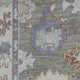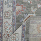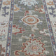 This new Turkish handwoven rug has a beautiful green background with blue, rust, tan, gray, gold, and neutral accents. We call this design the "modern oushak" which describes the new take on the classic oushak rug.