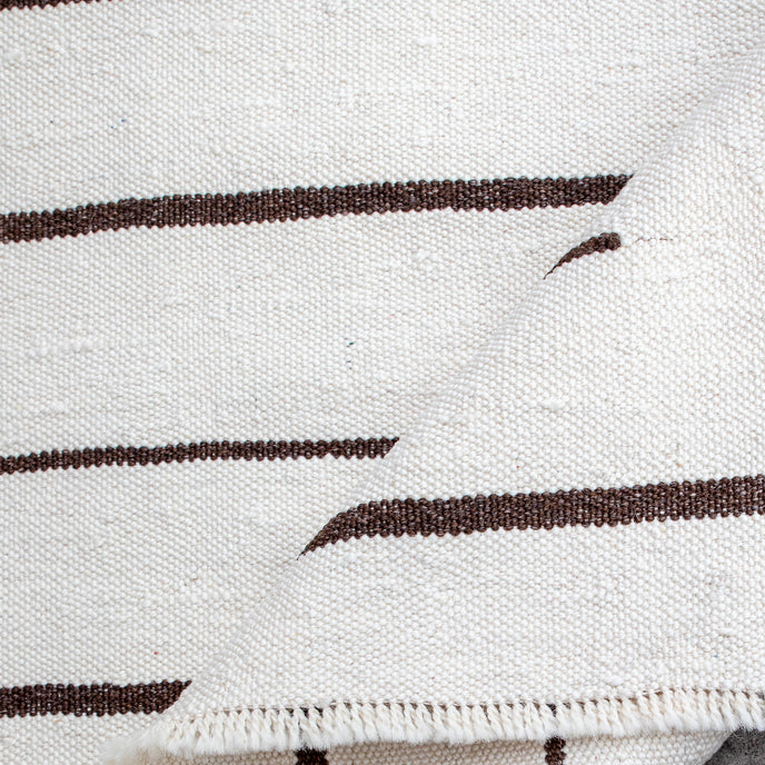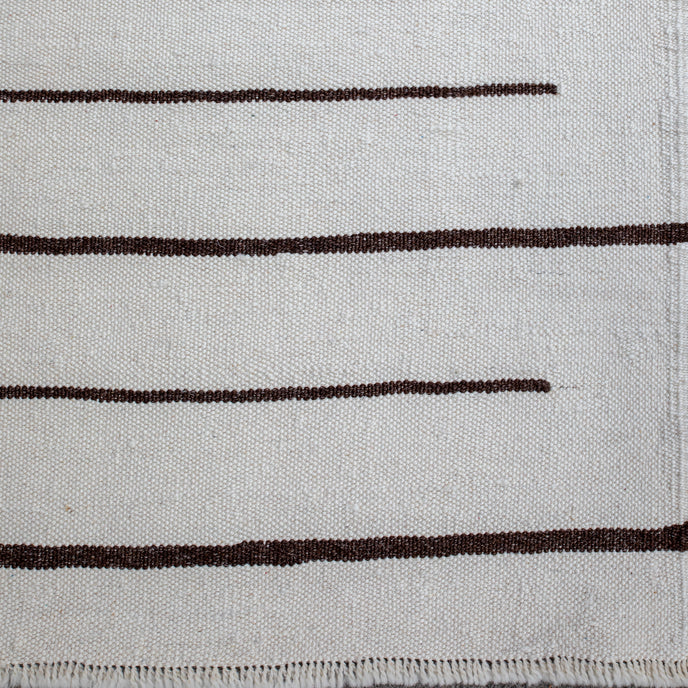 This new Turkish handwoven rug has a beautiful neutral background with deep brown black accents. We call this design the "modern kilim" which describes the new take on the classic kilim rug.