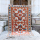 This Turkish handwoven vintage rug has a beautiful copper background with blue, gray, tan and neutral accents. Kars.