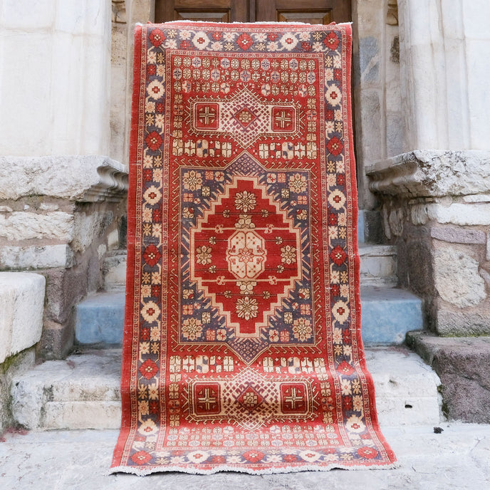4962 Handwoven Vintage Rug 3'11x8'2