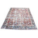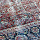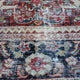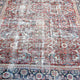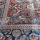 This Turkish handwoven vintage rug has a beautiful red background with navy, olive, turquoise, brown, pink, and neutral accents. Mahal.