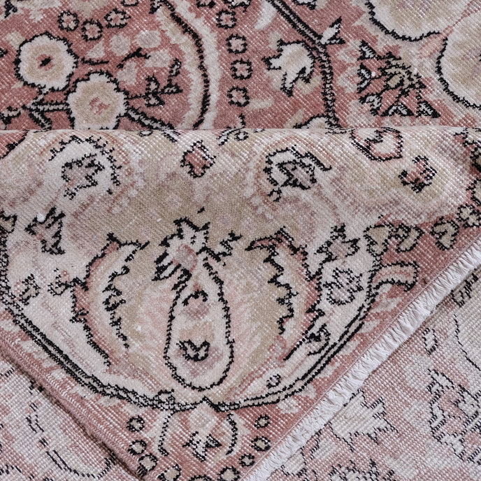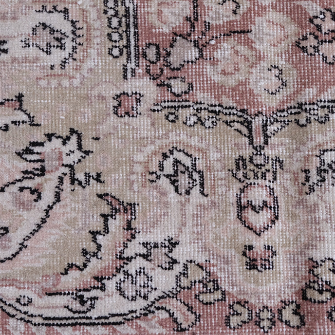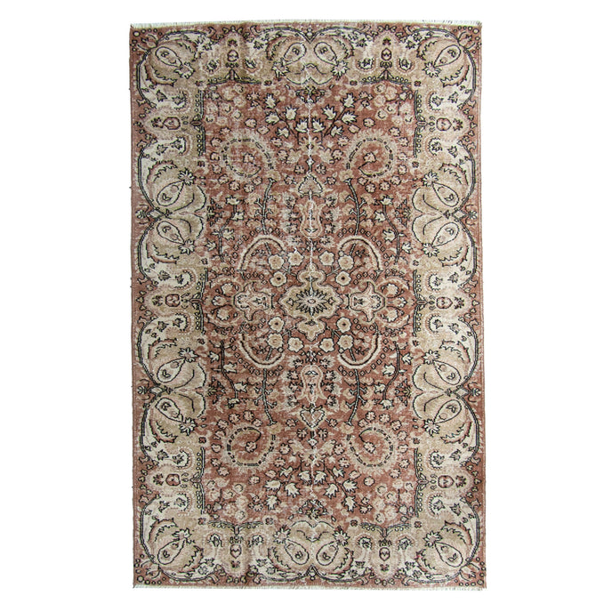 This Turkish handwoven vintage rug has a beautiful neutral background with brown and black accents. Isparta.