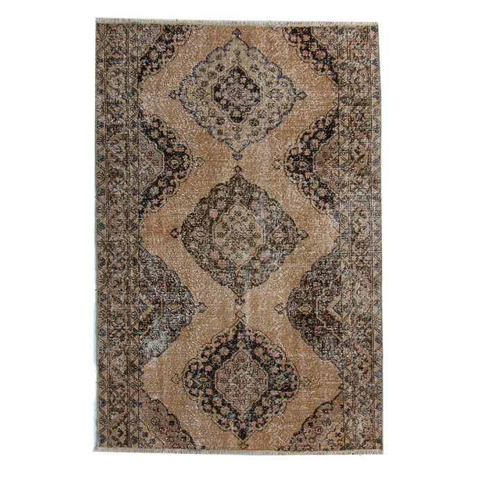 This Turkish handwoven vintage rug has a beautiful neutral background light blue, lavender, pink, and brown accents. Konya.