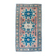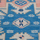 This Turkish handwoven vintage rug has a beautiful pink background with blue, cream, and neutral accents. Balıkesir.