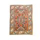 This Turkish handwoven vintage rug has a beautiful orange background with aqua blue, cream, and neutral accents. Çanakkale.