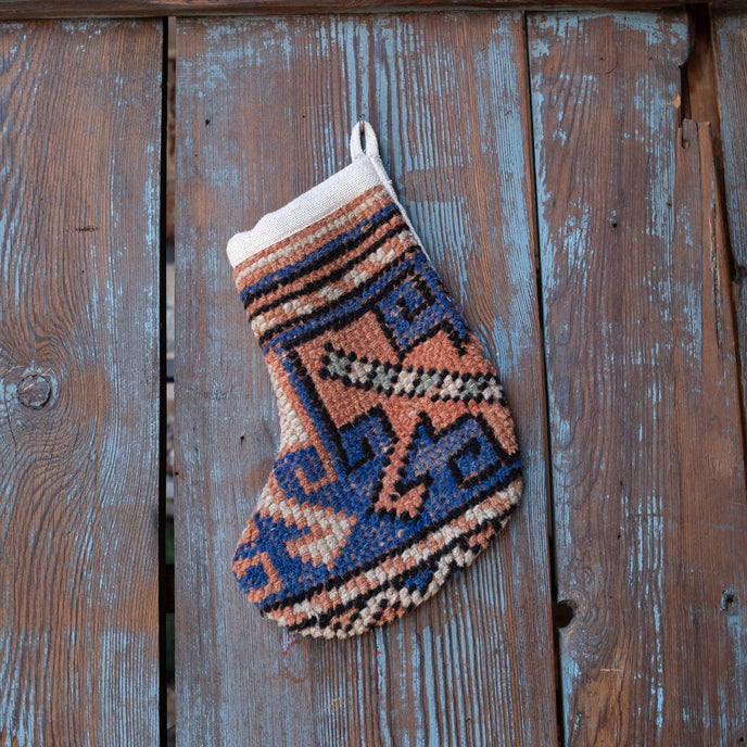 No. 399 Mini Size Christmas Vintage Rug Stocking One-of-a-Kind
