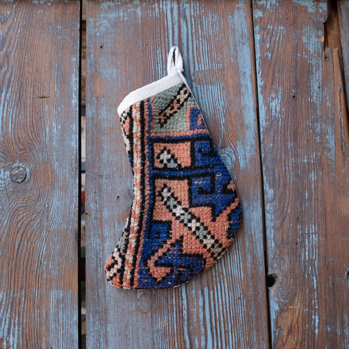 No. 402 Mini Size Christmas Vintage Rug Stocking One-of-a-Kind