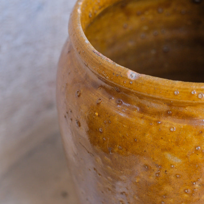 This gorgeous vintage olive jar from Turkey will add character to any space. Each is one of a kind with its own unique story to tell.