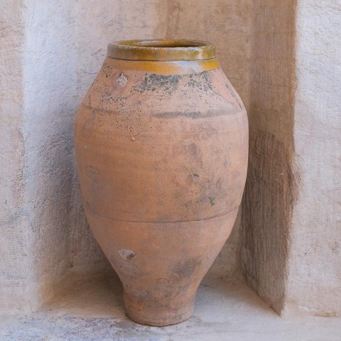 Our vintage olive jars are sourced directly from the heart of Turkey. Handpicked during our travels, each jar is a one-of-a-kind treasure with timeless character and charm. These rustic artifacts effortlessly enhance any space in your home, whether indoors or outdoors. Olive jars brings a touch of authenticity and a sense of history to your decor, making it a standout piece in any setting. These distinctive jars add a touch of warmth and uniqueness to your surroundings, and each one has a story to tell.