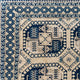 This vintage Turkish handwoven rug has a beautiful beige background with blue accents.