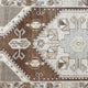 This vintage Turkish handwoven rug has a beautiful neutral background with gray, brown, gold, and neutral accents.