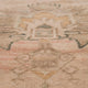 This vintage Turkish handwoven rug has a beautiful neutral background with tan, blue, gold, aqua, green, and neutral accents.