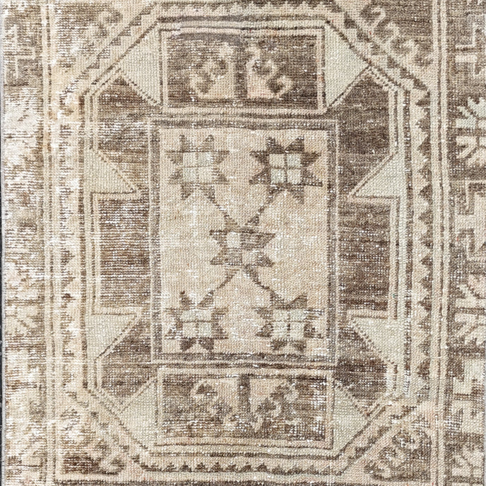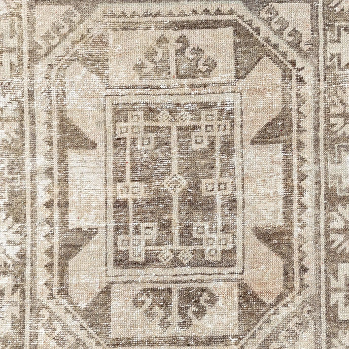 This vintage Turkish handwoven rug has a beautiful neutral background with brown and neutral accents.