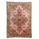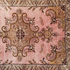 This vintage Turkish handwoven rug has a beautiful peach background with yellow, brown, green, and black accents.