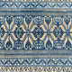 This vintage Turkish handwoven rug has a beautiful beige background with blue accents.