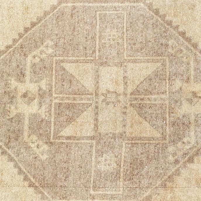 This vintage Turkish handwoven rug has a beautiful neutral background with tan, brown and neutral accents.