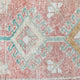 This vintage Turkish handwoven rug has a beautiful salmon background with blue, gold, and neutral accents.